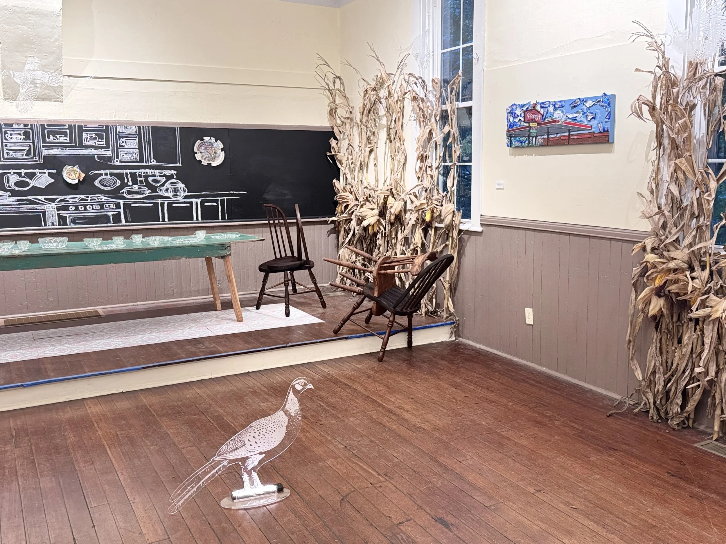 Alongside this civic work, I maintain an active studio and exhibition practice. My work has been shown at the Nelson-Atkins Museum of Art, Nerman Museum of Contemporary Art, Leedy-Voulkos Art Center, Englewood Arts, and venues across the United States. Recent exhibitions include Ocular Anthology (2022), Where Have All the Pheasants Gone? (2024), and A Seat at Grandma’s Table (2025).